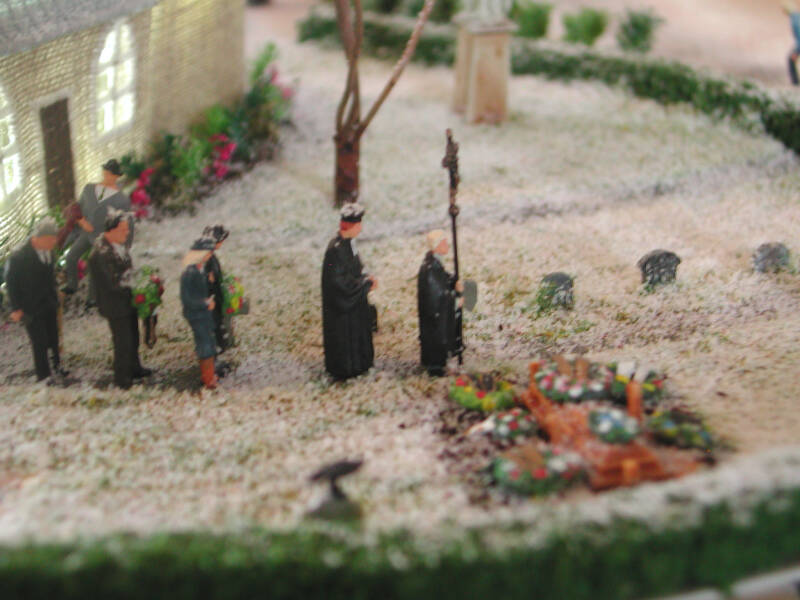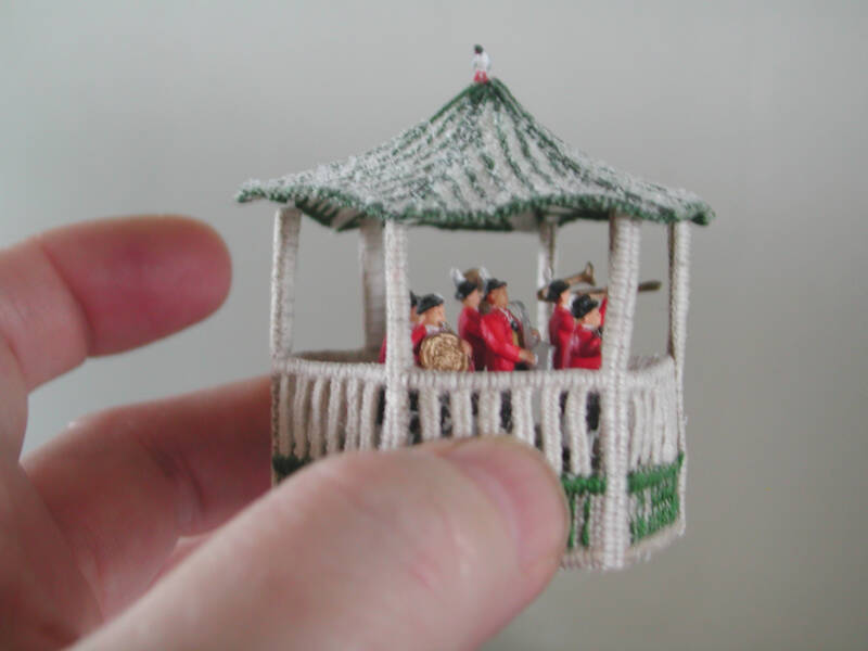 Voor het blad Poppenhuizen en Miniaturen 199 heb ik dit dorp gemaakt. De huizen, de kerk en de muziektent zijn geborduurd op de hardanger manier en later gesteven en in elkaar gezet. Elke winter komt dit dorp van zolder en genieten we ervan.