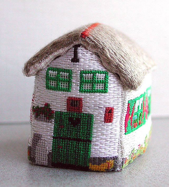 In mijn poppenhuizen zijn dan ook veel borduurwerken te vinden.