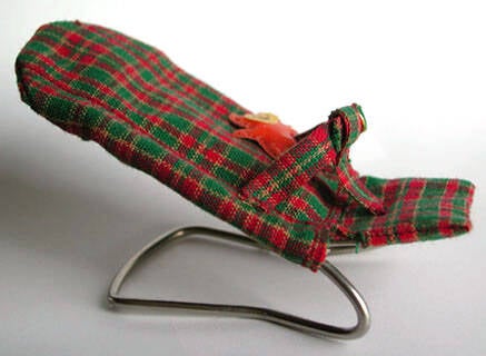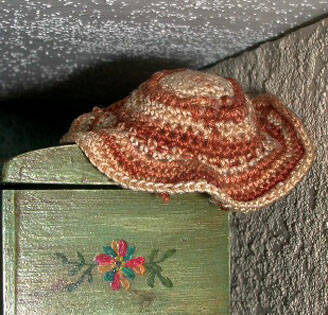 Een tuinbroek gemaakt van een pompedoek, een badcape, een hesje van een boeren zakdoek, het eerste jasje - gehaakt en zwart- met bijpassend mutsje, een vestje met opgemaasde motieven.