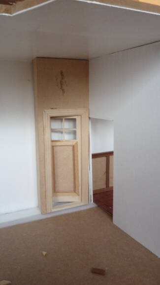 Er werd geschilderd, behangen en wandjes gezet. De kast bestaat uit een grote en een kleine kamer.