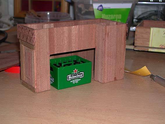 Eerst was de achterkant van de bar helemaal dicht maar toen zei Margriet: "dat is niet handig. Als je de onderkant open zaagt kun je er een krat bier neerzetten. En daar had ze gelijk in.